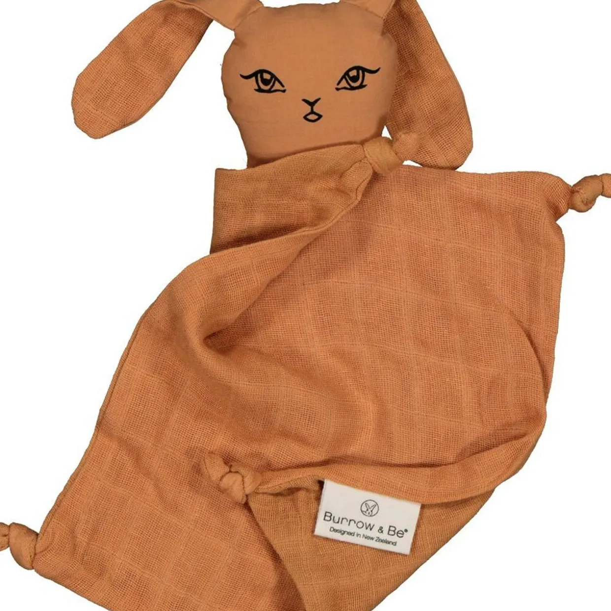 These gorgeous bunny comforters are tactile and soft. Made from 100% GOTS certified organic cotton muslin. Many children self sooth by touching fabric or rubbing fabric against their face so these are the perfect size for little hands.