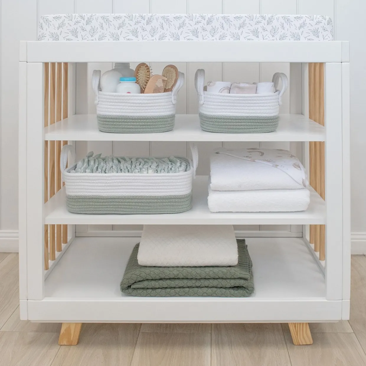 Stunning nursery storage baskets from Living Textiles have just arrived and they are so pretty! Perfect for under the change table or even in the bathroom, this gorgeous 100% cotton rope 3 piece storage set will keep everything organised for change and bath time.