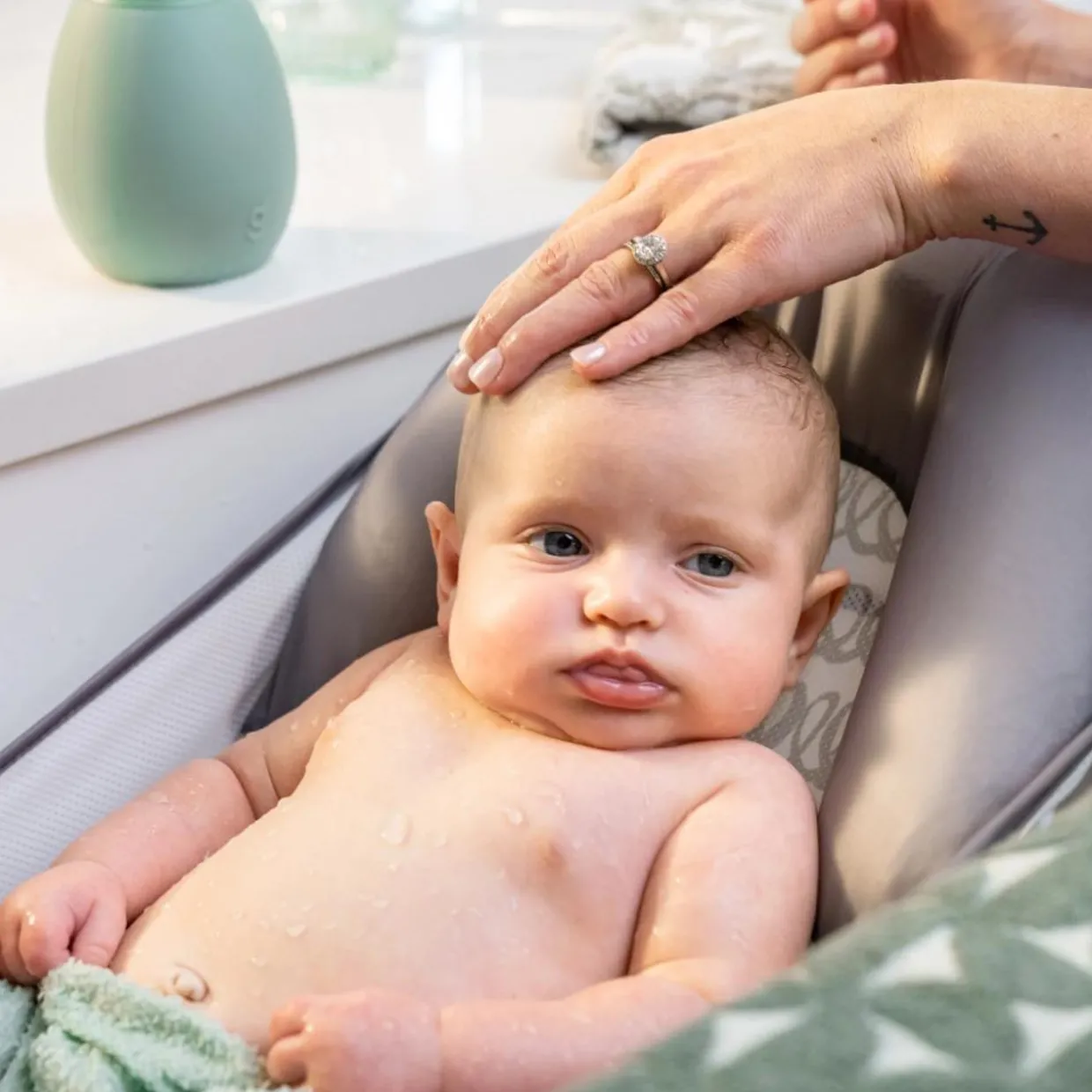 - 4 non-slip grips on the bottom of the bather that help keep it in place