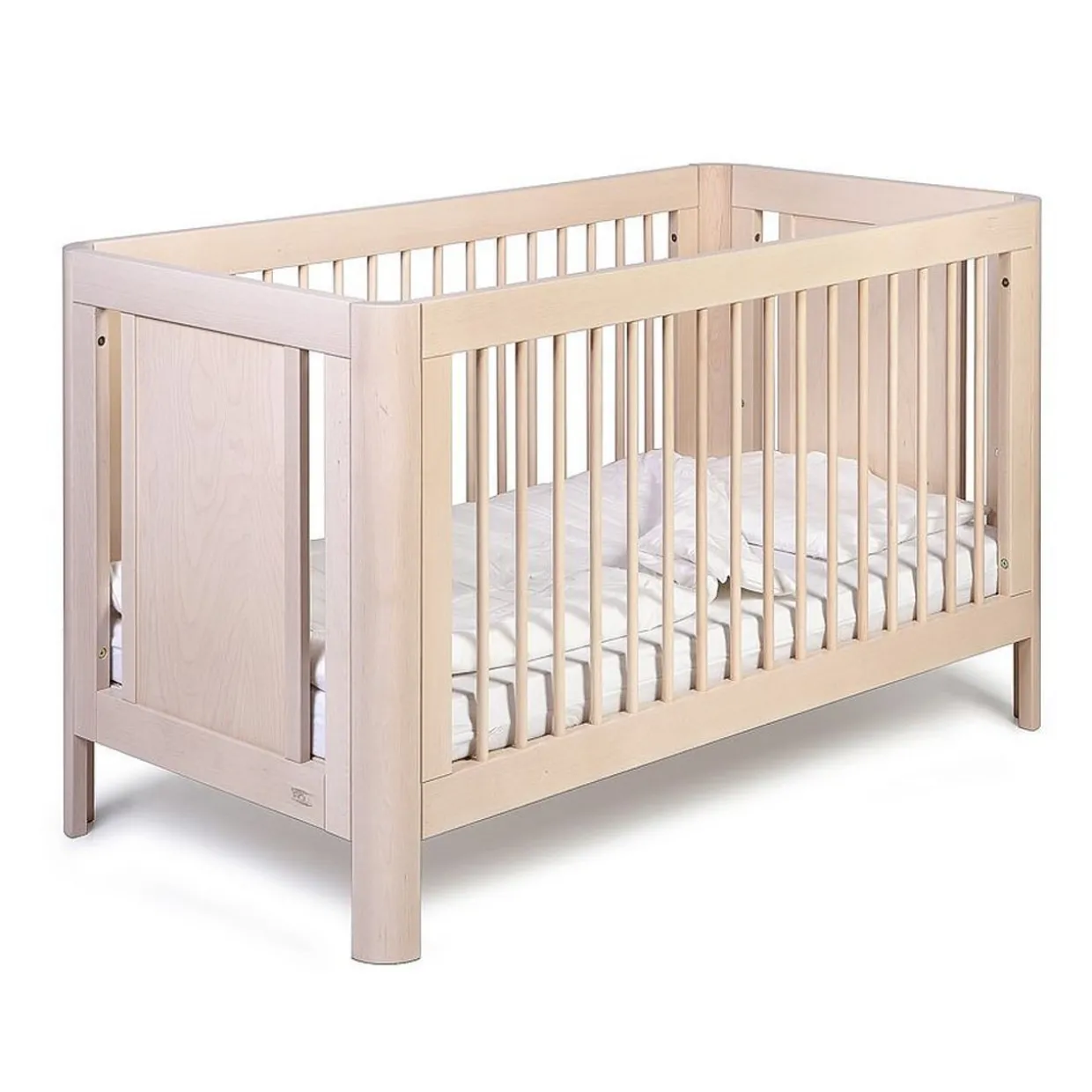 The Sun Cot is a timeless and beautiful design by Swedish company Troll and is manufactured from European plantation birch wood, this is a fantastic purchase that suits perfectly as your little one grows. It features dual mattress base height positions: Low for toddlers and Higher for infants.