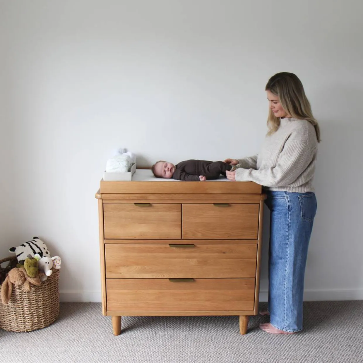 - Offers a safe and convenient space for nappy changes